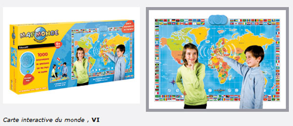 RépondreEffacercarte interactif du monde on l'a pas mais on leur a offert la carte interactif de la france je me suis dit autant commencer par notre pays ^^ et il adore bien sur et à 12 euros sa valait le coup